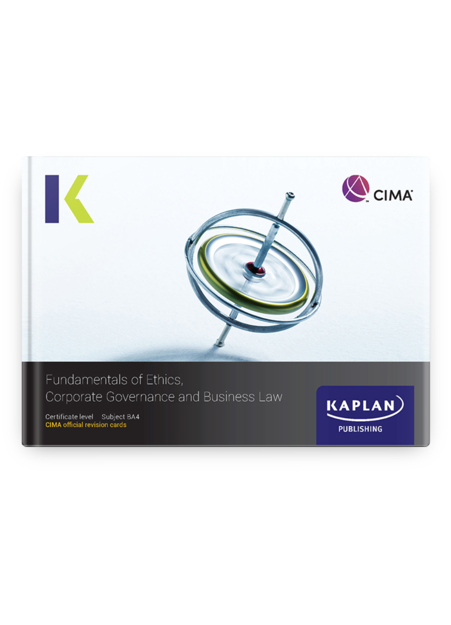 The BA4 Fundamentals of Ethics, Corporate Governance and Business Law Revision Cards have been written to boost your understanding of ethics, corporate governance and business law. They are designed to be used alongside the Study Text and Exam Kit. They are a pocket-sized summary of the vital topics in the syllabus, providing an overview of key course content. Our Revision Cards are based on CIMA-approved materials, so you can rest assured the content covers the full syllabus.